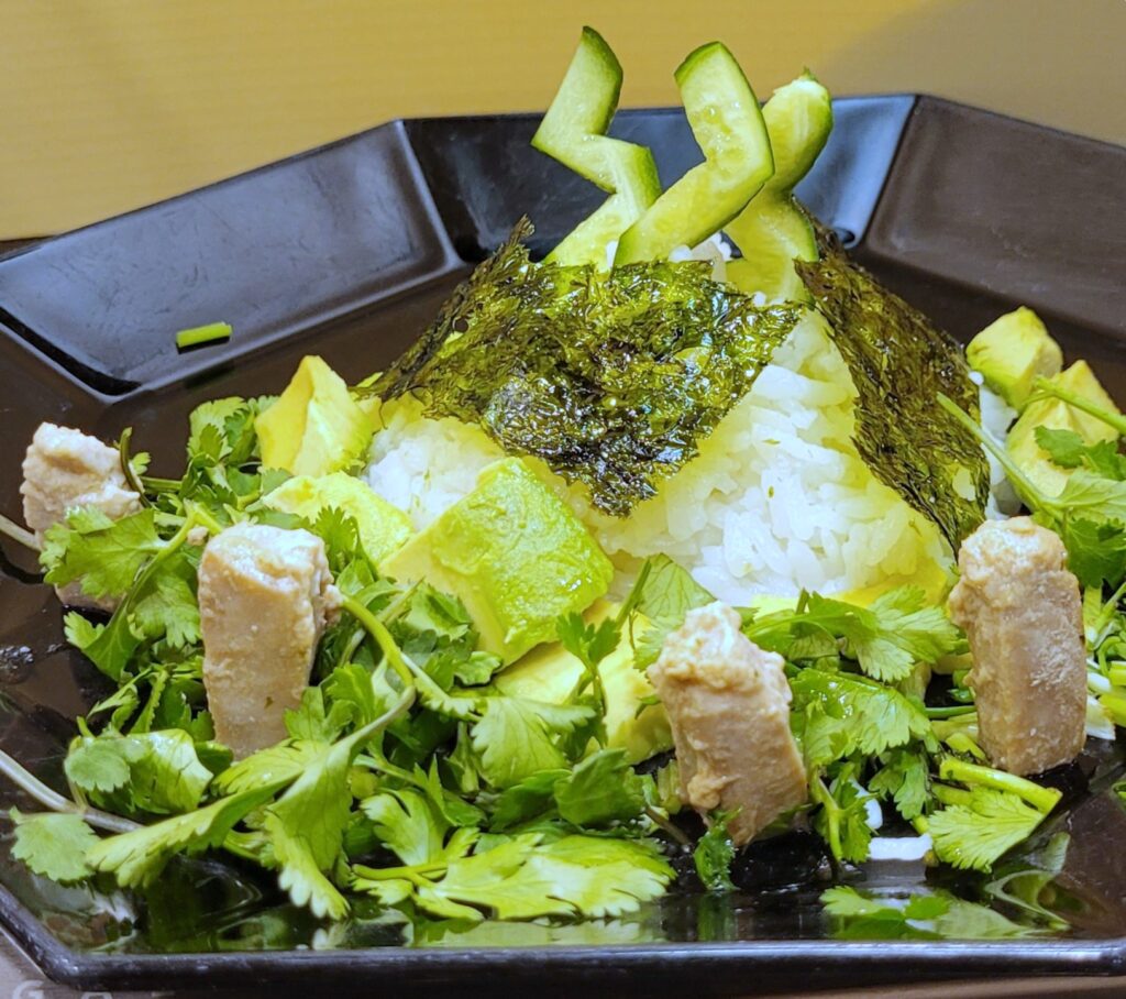This can be either a lunch or a dinner idea. There are commercial rice/egg molds that are meant to resemble ducks, bears, and penguins, often with corresponding seaweed cutters. But sticky rice is a very flexible medium; one could, e.g., mold it with one’s hands, or use a cookie cutter, to shape it into something that calls the week’s parsha to mind. I sometimes do this, place the rice in the center of the plate, and surround with a curry of some sort.