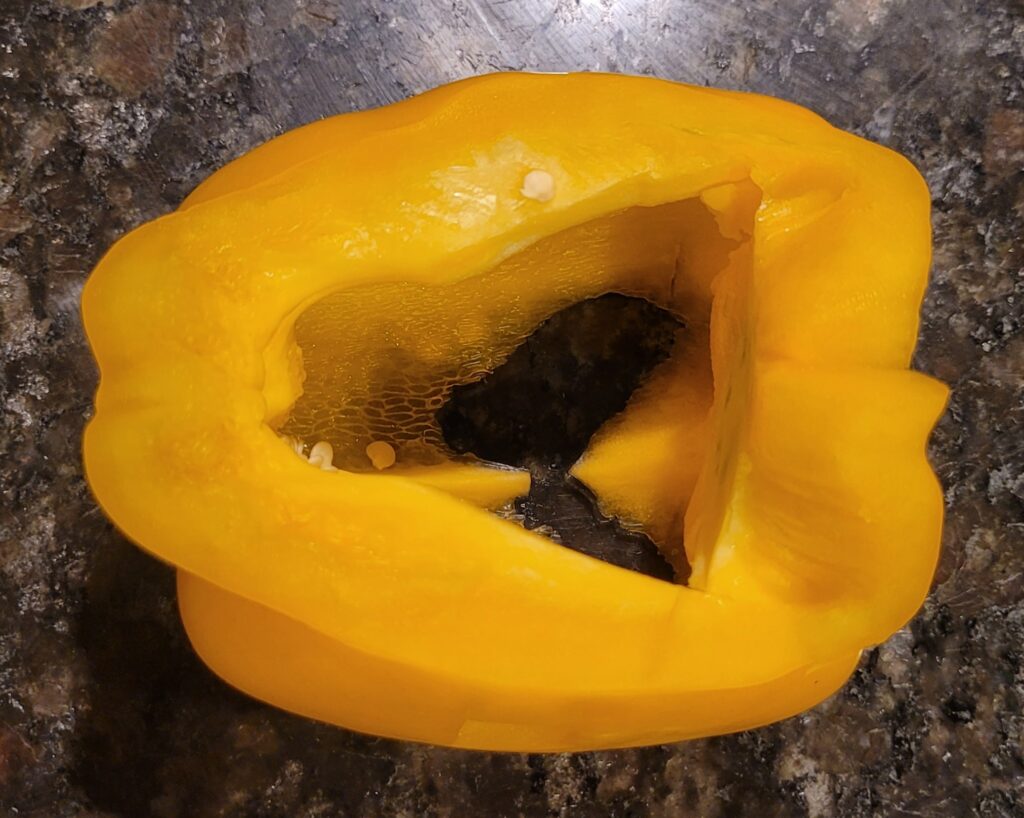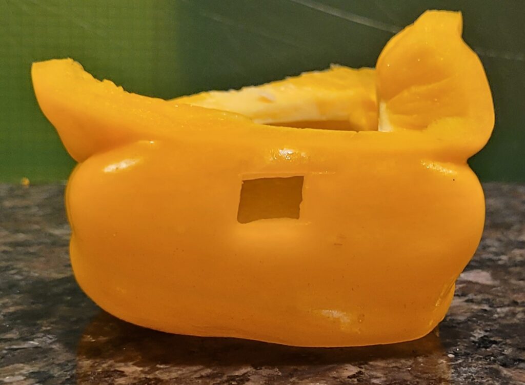 1. Examine the pepper. Mine consisted of three large segments. The body of the boat was to be two of the segments, with the third being removed except for the edges which would form the base for the roof.