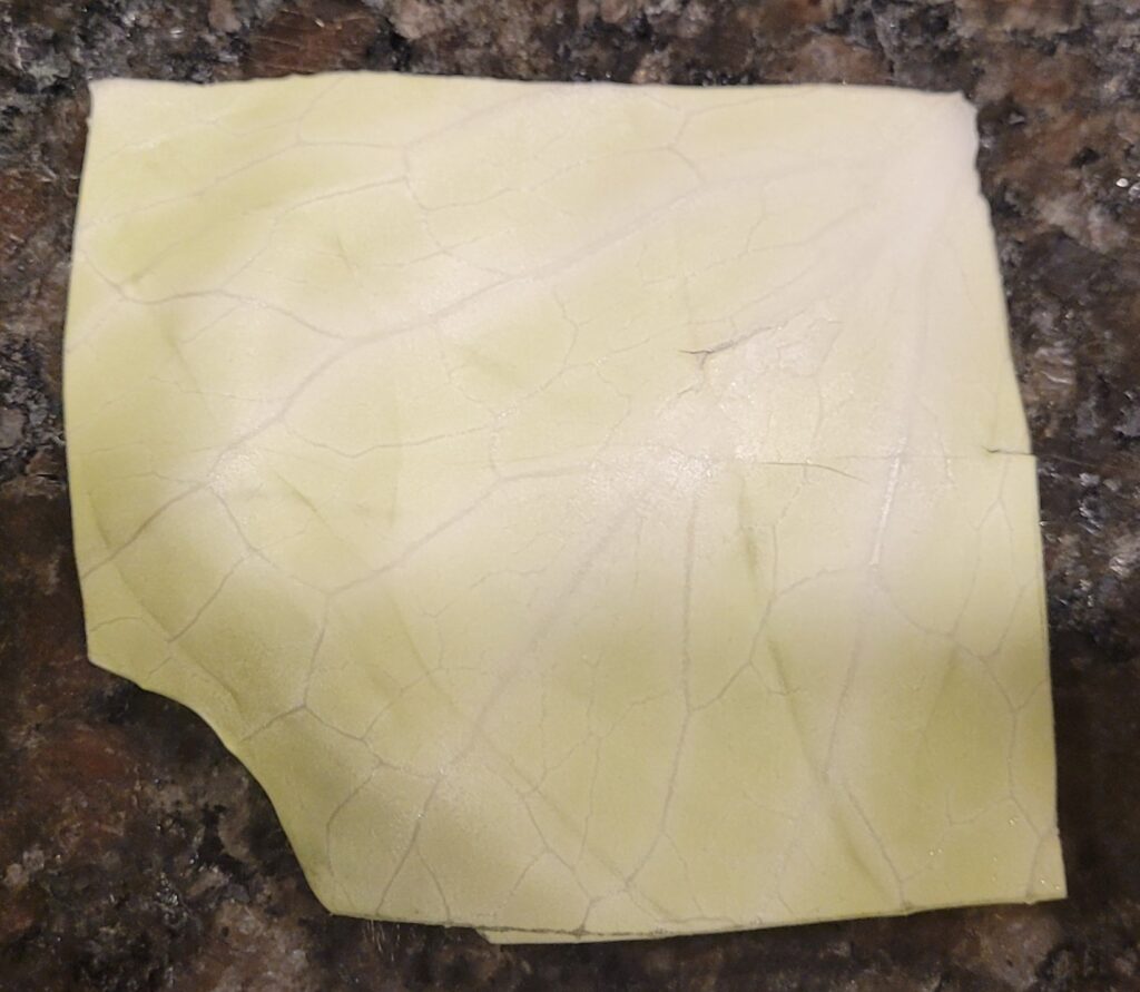 7. Cut the cabbage piece to fit as the roof. Fold in half to make it easily drape, put on top of “ark.”