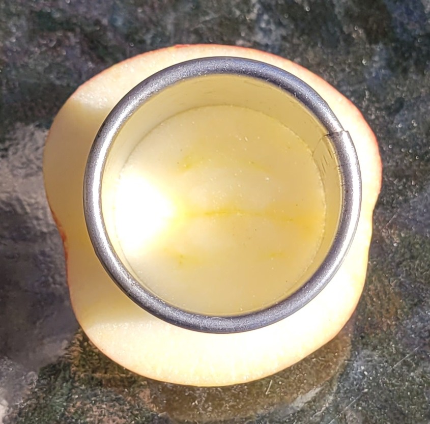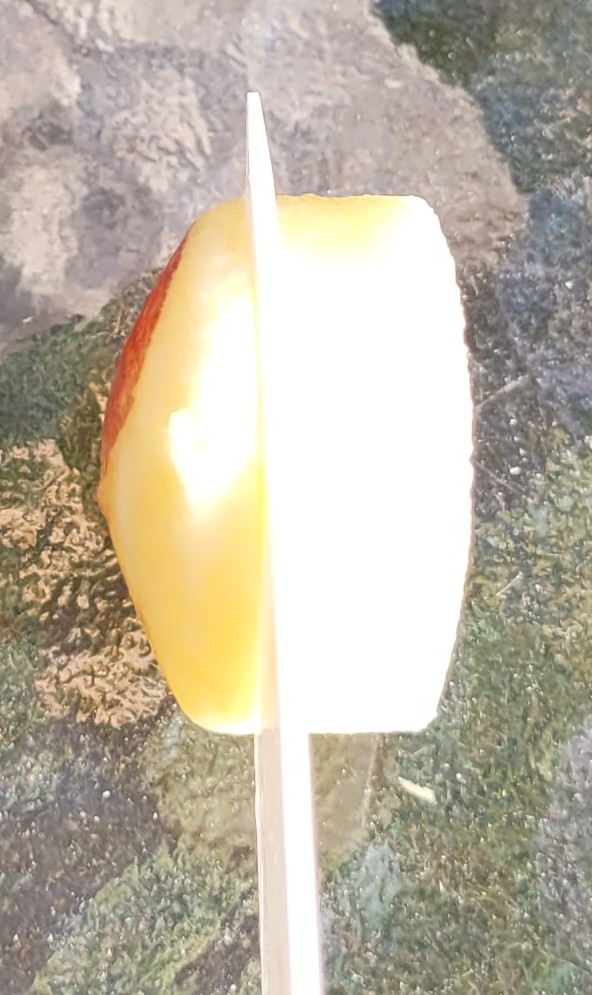 6. Put the core of the apple on the surface, followed by the hollowed out part.