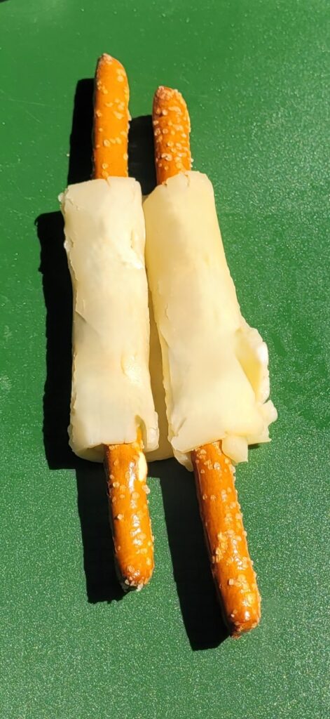 Alternatively: Use small pretzel sticks and cold cuts… but make sure the pretzel sticks are parve.